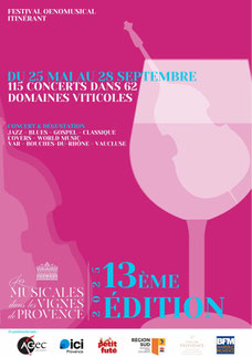 4 concerts dans le cadre des Musicales dans les Vignes de Provence, un dîner concert à Caumont Centre d'Art à Aix-en-Provence, une escapade à Simiane-la-Rotonde en Haute-Provence et pour clore la saison, un dernier concert à Gréoux les Bains.